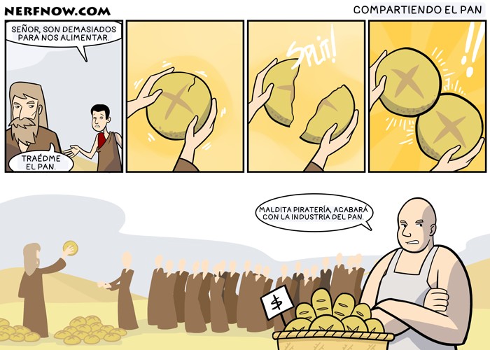 Y asimismo ocurre en el ámbito informático o digital. Copiarte un archivo en un disco, pendrive, o enviártelo por correo, prácticamente no me cuesta nada. Entonces tú puedes obtener todo el beneficio de tener el archivo (un libro, una canción, un vídeo o un programa) con un costo cercano a cero.